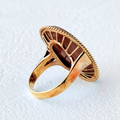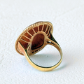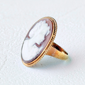 赤みを帯びたレッドアゲートに女性像を彫り込んだカメオをセットした、K18製リング。