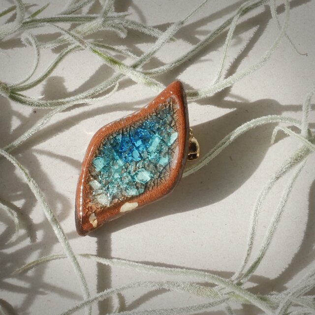 陶器ブローチ みずたまり no.21 リーフ