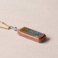 四角く切り出し浅く彫った陶土に数色のガラス粉を置いて焼成しました。縦に展開するグラデーションがとても自然で魅力的です。