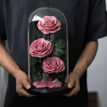 約17.5 x 17.5 x 31.5 cmのこの作品には、高級感のあるガラスカバーが付属しており、どなたにも安心してお贈りいただけます。また、ボックスは花をほこりや湿気から守り、より長く美しい状態を保てます。