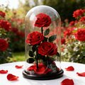 約17.5 x 17.5 x 31.5 cmのこの作品には、高級感のあるガラスカバーが付属しており、どなたにも安心してお贈りいただけます。また、ボックスは花をほこりや湿気から守り、より長く美しい状態を保てます。