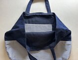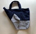紺デニム生地に、紺白ボーダー生地を合わせました。