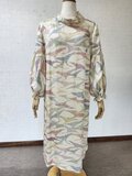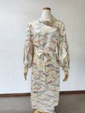 早速のご発送ありがとうございました。本日拝受し、手のかかった丁寧な縫製に見入っております。上品でモダンな色柄もデザインもとても素敵です。長く大事に着用させていただきます。共布のベルトはリボンタイやスカーフとして単品でも活用したいです。また機会がありましたらどうぞよろしくお願いいたします。
