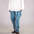 絹地に描かれたような水流模様のブルーグラデーションが印象的で、まるでアートを穿くような存在感。