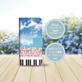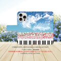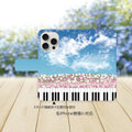 ピアノ鍵盤&音符&コスモスデザインのiPhone専用 手帳型スマホケースです。