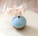 ころんと丸い可愛らしさと陶器らしい素朴で落ち着いた雰囲気、すっきりとした佇まいをお楽しみいただける花器を目指して制作しています。