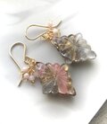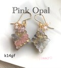 14kgf ピンクオパール×クリスタル×金箔 トリプレットストーンピアス