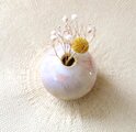 全体に艶やかな白い釉薬をかけた後、秋をイメージした様々な色合いの釉薬を使用して色付けをした、ちょこんと小さな一輪挿しです。
