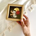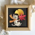 [原画]和紙ちぎり絵『紅葉とネコ』真っ赤な紅葉に黄色いイチョウの葉!カラフルな秋を彩る小さなインテリアアート