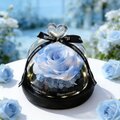 サイズは約12×12×14cmで、光の効果を備えた豪華なガラスカバーが付属します。ライトを灯すと温かみが増し、贈り物にぴったりです。また、ガラスカバーは埃や湿気から花を守り、保存期間を延ばします。