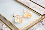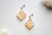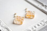 レジンアート スクエアピアス〈水紋・オレンジ〉