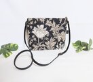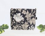 ウイリアムモリスのアネモネ柄ブラック地にアイボリーとベージュの大きなアネモネの花柄、軽くて柔らかな綿シーチング生地を使用しています