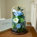 約17.5 x 17.5 x 26.5 cmのこの作品は、高級感のあるガラスカバーが付属しており、どなたにも安心してお贈りいただけます。また、ボックスは花をほこりや湿気から守り、より長く保存することができます。