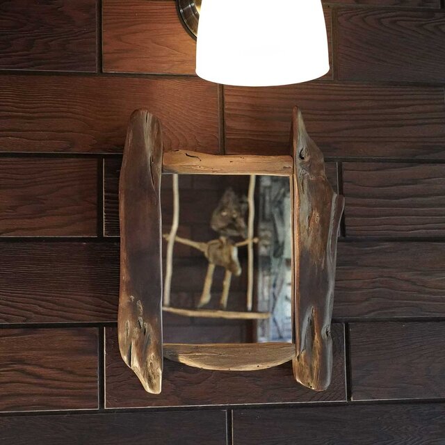 お部屋の雰囲気や時の移り変わりを流木のミラーを通して演出してください。