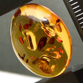 サンスパングル(sun=太陽 spangle=星のように光る)(別名グリッター)は、琥珀の中に見られる丸い円盤状のもので、このインクルージョンの表面が光を反射する事からのその名がつきました。
