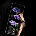 作品のサイズは約12 x 12 x 28cmで、高級感のある透明なギフトボックスに梱包されているので、どなたにも安心してお贈りいただけます。また、ボックスは花を埃や湿気から守り、より長く保存することができます。
