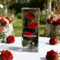 作品のサイズは約12 x 12 x 28cmで、高級感のある透明なギフトボックスに梱包されているので、どなたにも安心してお贈りいただけます。また、ボックスは花を埃や湿気から守り、より長く美しい状態を保つことができます。