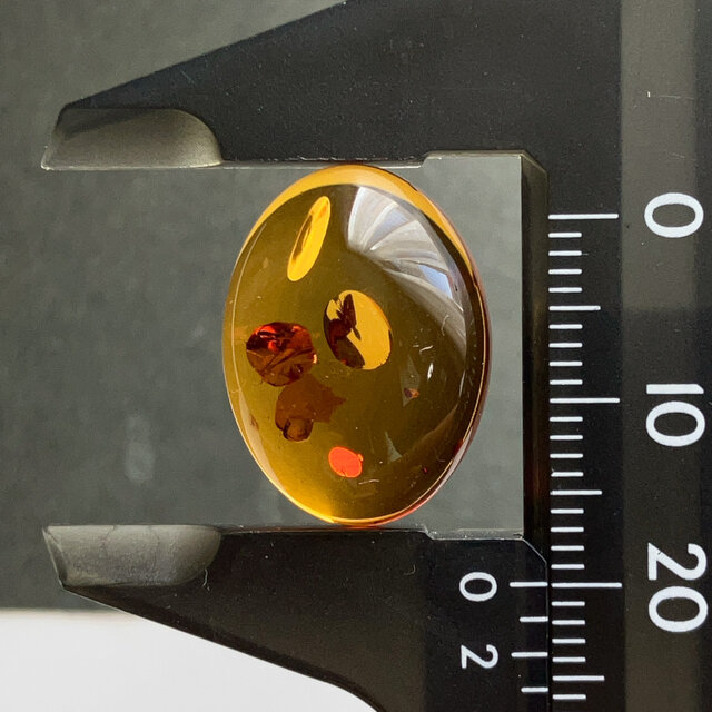 きらりと光る内包物が美しい、バルティックアンバーの楕円形ルース です。