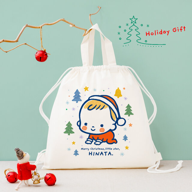 クリスマス 名前入り プレゼント ラッピング ギフト 包装 名入れ 巾着 ナップサック ( Christmas-baby)