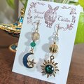 月と太陽 moon sun☀︎darkピアス エメラルド クリア No.1267