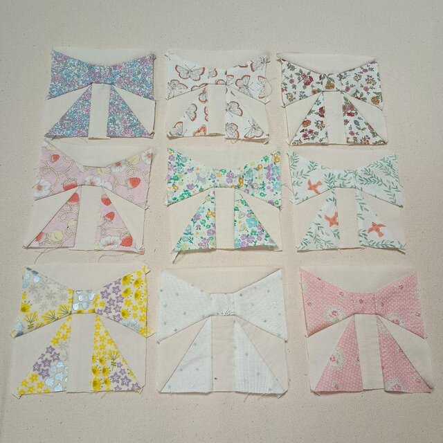 9 / 9 リボンパターン❁パッチワークキルトトップ素材 9枚セット