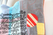 一針ずつ編み込んだしましま刺繍がカラフル!