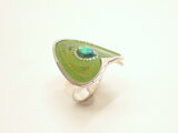 ハート形ににカットした銀の板にオパールをセッティングしたリングです。