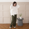 柔らかく伸縮性のあるスウェット素材はギャザーを寄せて綺麗なフリルが実現。