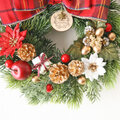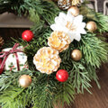 【使用花材】ポインセチア赤・白/松ぼっくり/クリスマスプレゼント/クリスマスベル/りんごなど