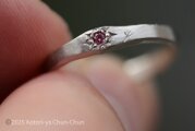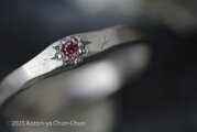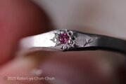 ルースだともっと濃いピンクなんだけどPt900だと地金の色との相互作用で理想形のピンクに収まります。それはそれでちょっと残念な気もするけど…。