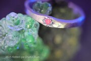 今回の石はカラーエンハンスメント(色を鮮やかに見せる処理)がされたピンク。流石に無加工でこの色は桁が一つ違うかもしれません(´ω`;)