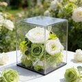 この作品は「庭」と名付けられています。誰もが心の中に小さな庭を持っています。小さくても、一目見ればいつも美しさに満ちています。サイズは約10×10×10cm。高級感のある透明ギフトボックス入りなので、どなたにも安心してお贈りいただけます。箱は花を埃や湿気から守り、より長く楽しめます。この作品は3種類のデザインからお選びいただけます。あらゆる機会や相手にぴったりの贈り物です。