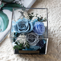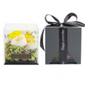 この作品は「庭」と名付けられています。誰もが心の中に小さな庭を持っています。小さくても、一目見ればいつも美しさに満ちています。サイズは約10×10×10cm。高級感のある透明ギフトボックス入りなので、どなたにも安心してお贈りいただけます。箱は花を埃や湿気から守り、より長く楽しめます。この作品は3種類のデザインからお選びいただけます。あらゆる機会や相手にぴったりの贈り物です。