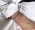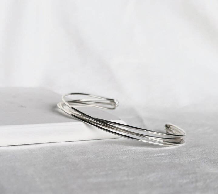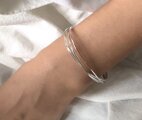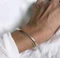 ご着用の際にはバングルを縦にし、バングルの隙間の部分から手首の薄い部分を通し、装着して頂くとご着用いただきやすいです。