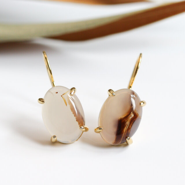 一つ一つの模様が喩えようもないほど個性的。アートを内包したかのような表情が魅力の、モンタナモスアゲートのピアスです。