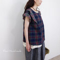 ネイビータータンとグレーアクセント・二段フリルプルオーバー