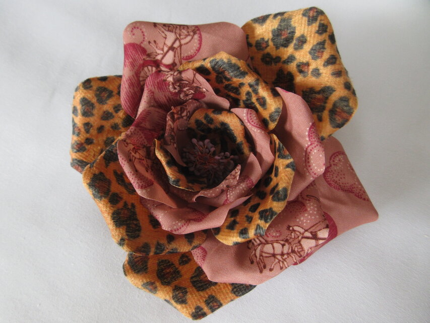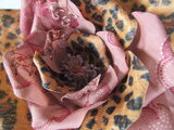 ヒョウ柄の生地を組み合わせた大きいバラコサージュです。