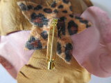 レトロプリント×ヒョウ柄のバラコサージュ(ピンク系)