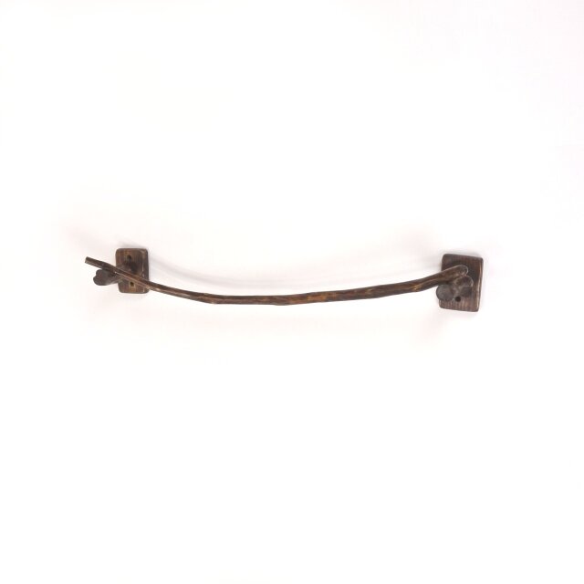 タオルを掛けるハンガー部は キレイな弧を描く湾曲細枝流木、たくさんの枝跡が見られます。