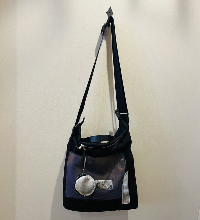 コーデュラナイロンの2ウェイショルダーバッグ・シルバーポーチ付き