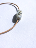 陶土を焼いたオリジナルビーズをベージュの本革紐に通したネックレスです。