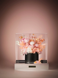 この作品のタイトルは「中心」。季節が変わっても、状況が変わっても、あなたはいつも中心、一番大切な場所にいます。サイズは約28×28×29.5cm。高級感のある透明ギフトボックス入りなので、どなたにも安心してお贈りいただけます。箱は花を埃や湿気から守り、より長く楽しめます。この作品は5種類のデザインからお選びいただけます。あらゆる機会や相手にぴったりの贈り物です。