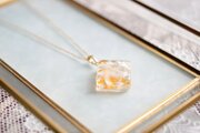 思っていたよりも、ペンダントトップが大きくて、私はこの位だといいなと思っていたので、とってもうれしくなりました!!お花が大好きで、特に白いお花が好きで、このネックレスには白いお花が入ってるので、大好きなお花を身につけられて、とってもうれしいです! 作って下さり、ありがとうございました。大切にします️