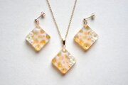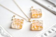 レジンアート スクエアペンダント〈水紋・オレンジ〉