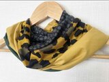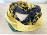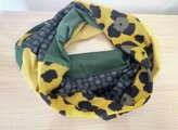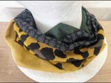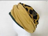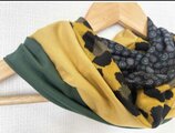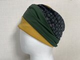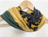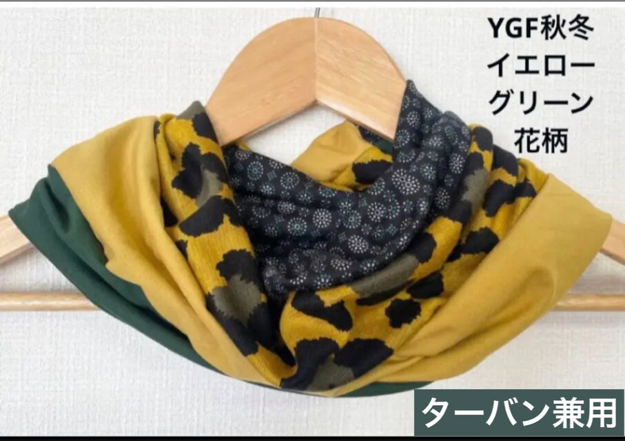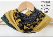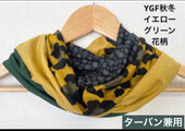ターバン兼用イエローグリーンフラワー&ブラックツートンネックウォーマー