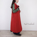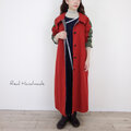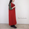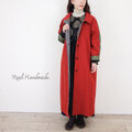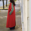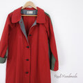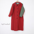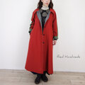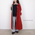 [予約販売] レンガ色ハイカウントツイルとカーキスリーブ・ステンカラーコート/マキシ丈
