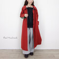 ハイカウントツイル〈ブリックレッド(レンガ色)〉で製作したマキシ丈のステンカラーコートです。