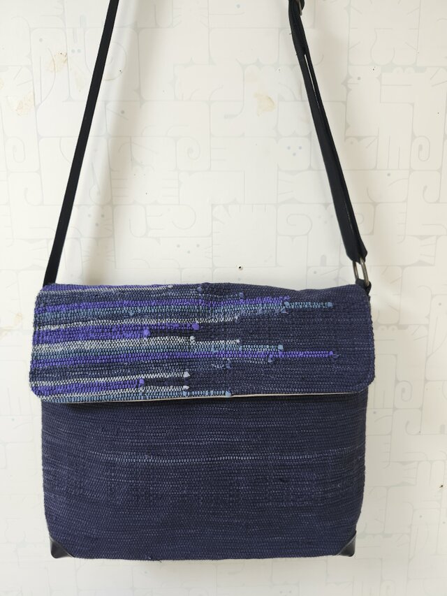絹の着物を解いて洗ってから、その布を裂いて横糸として織り上げ、バッグに仕立てました。