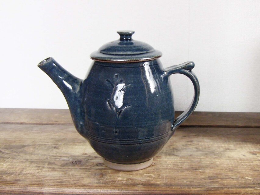 素地に野花を描き錆呉須釉を施釉してから焼成しています。
