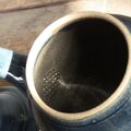 ●表面が乾いてきたら専用の道具を使ってボディに茶漉しの穴を開けます(お湯の出るところ)。